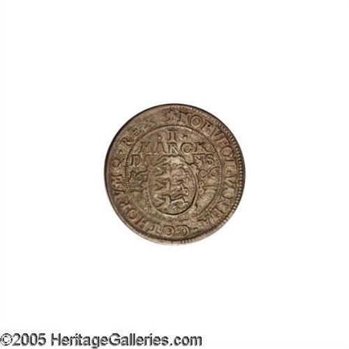<B>Christian IV Mark 1606, </B></I>Hede 92A, KM33.1, toned Fine, evenly worn and quite attractive. Bust with crown above/Arms. Very scarce type.