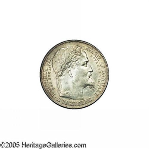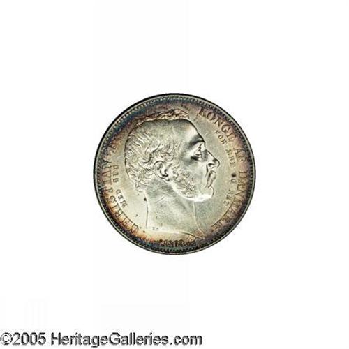 <B>Christian IX 2 Rigsdaler 1863, </B></I>KM770, XF, cleaned long ago and now nicely toned. Commemorative marking the accession of Christian and death of Frederik VII.
