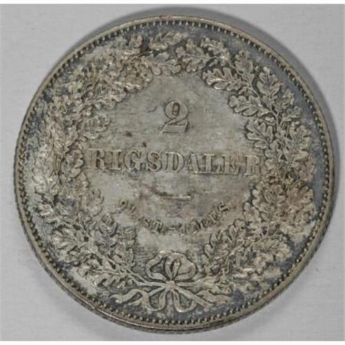 <B>Christian IX 2 Rigsdaler 1864-RH,</B></I> KM772.1, XF, lightly cleaned at one time and now nicely toned, few tiny contact marks.<BR><BR><b>Shipping:</b> Coins & Currency (<a target="_blank" href="http://www.heritageauctions.com/common/shipping.php">view shipping information</a>)
