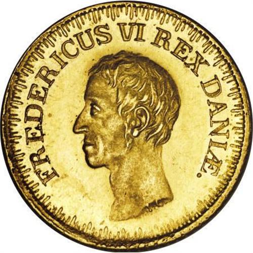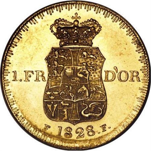 <B>Frederik VI gold Frederik d'Or 1828-FF,</B></I><BR> KM699, Hede-4A (S), Choice AU-UNC. Prooflike surfaces with only the slightest hint of friction on the highpoints. A very rare one-year type and the only example that we have seen<BR><BR><b>Shipping:</b> Coins & Currency (<a target="_blank" href="http://www.heritageauctions.com/common/shipping.php">view shipping information</a>)
