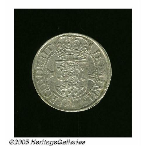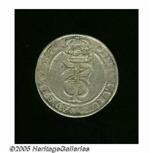 <B>Frederik III 4 Mark (Krone) 1657, </B></I>KM193-4, nearly VF, small flan flaw in the obverse crown.