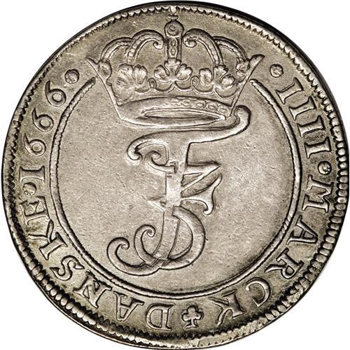 Denmark: Frederik III Krone/4 Mark 1666, KM276,