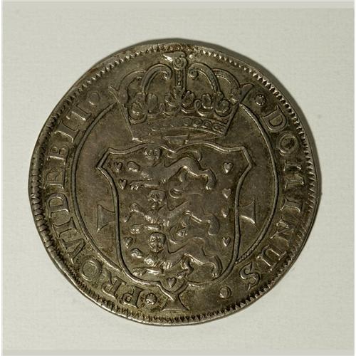 <B>Frederik III Krone/4 Mark 1666, </B></I>KM276, Davenport 3582, nicely toned XF, small flan flaw or trace of mounting above the crown on the reverse. First type with the denomination, IIII Marck, on the obverse.<BR><BR><b>Shipping:</b> Coins & Currency (<a target="_blank" href="http://www.heritageauctions.com/common/shipping.php">view shipping information</a>)
