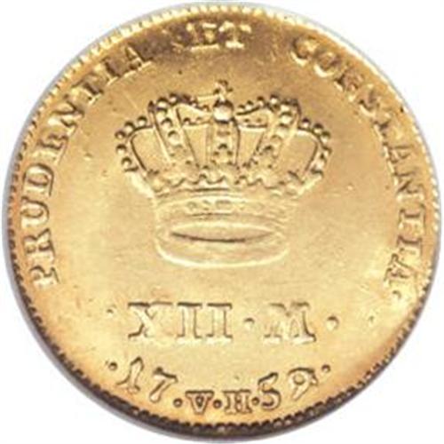 Denmark: Frederik V gold 12 Mark/Ducat 1759VH-W,