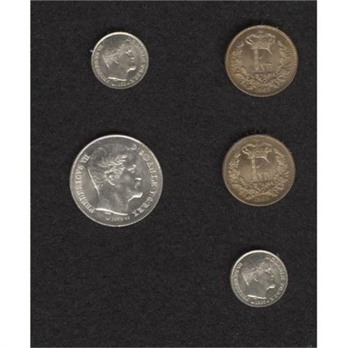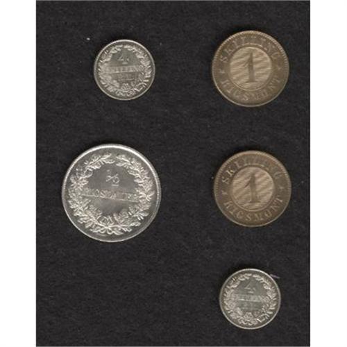 <B>Frederik VII - Quintet of Choice Minors, </B></I>KM763 Skilling 1863 (2), choice BU, KM758.2 4 Skilling 1856-VS (2), both Gem BU, and KM759 1/2 Rigsdaler 1855-VS, choice brilliant UNC. <B>Sold as is, no return lot.</B></I><BR><BR><b>Shipping:</b> Coins & Currency (<a target="_blank" href="http://www.heritageauctions.com/common/shipping.php">view shipping information</a>)