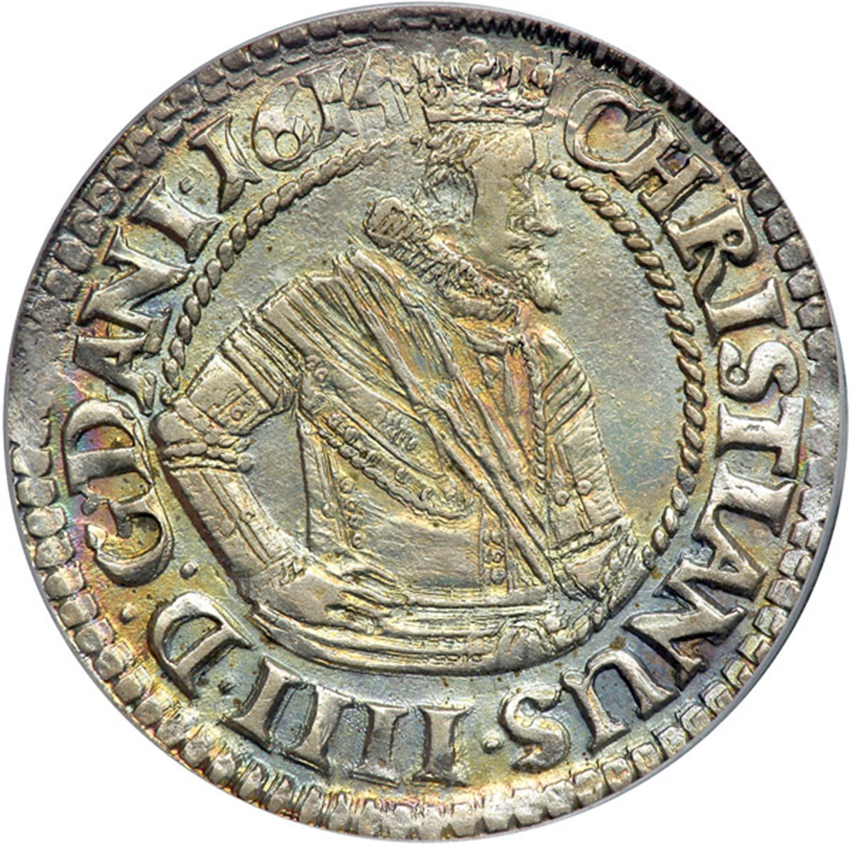 Denmark. Mark, 1614. Hede-99A; KM-52. Christian IV, 1588-1648. Crowned three-quarter bust right. Reverse: Value and shield. Lightly cleaned and retoned. PCGS called (Genuine), Our grade Very Fine.
