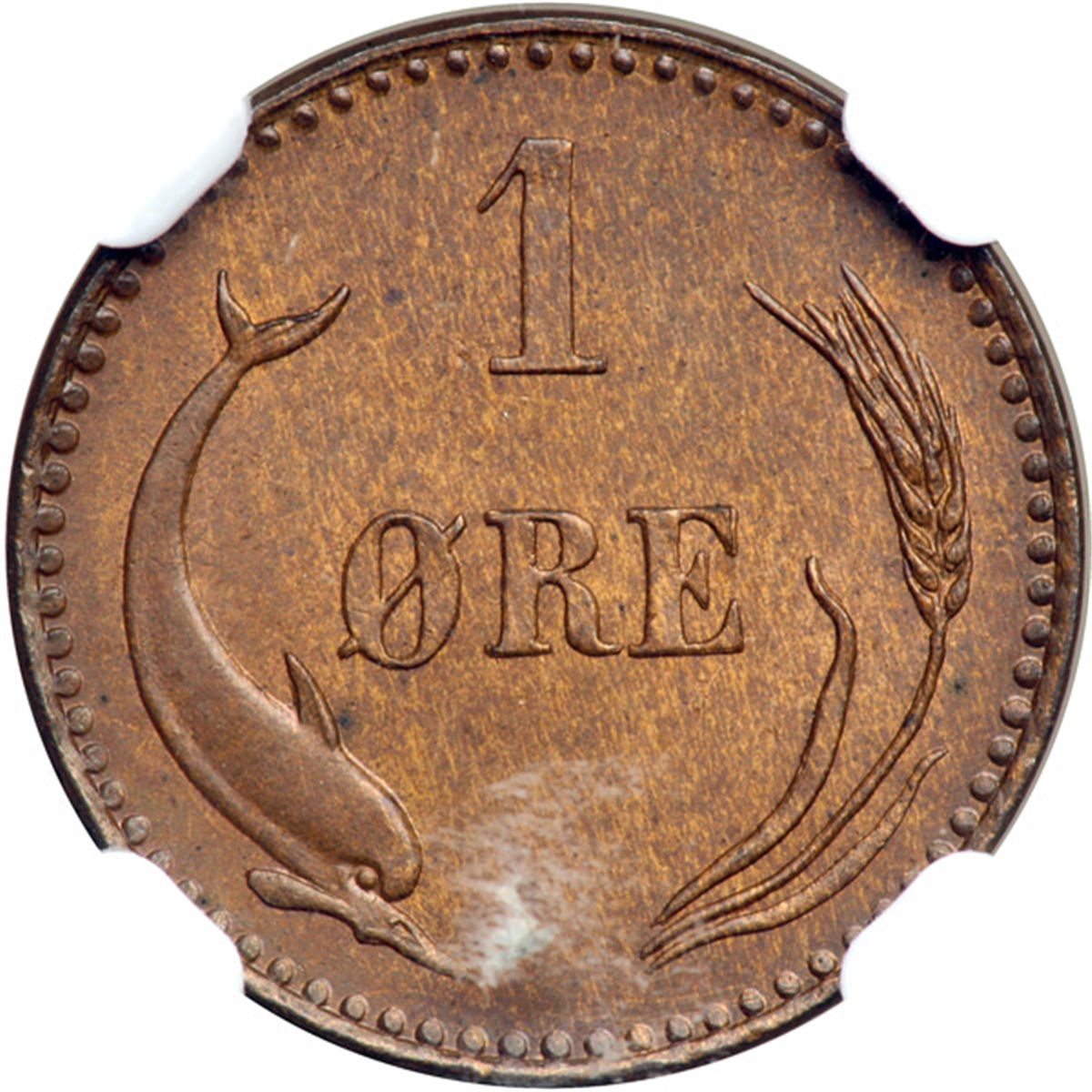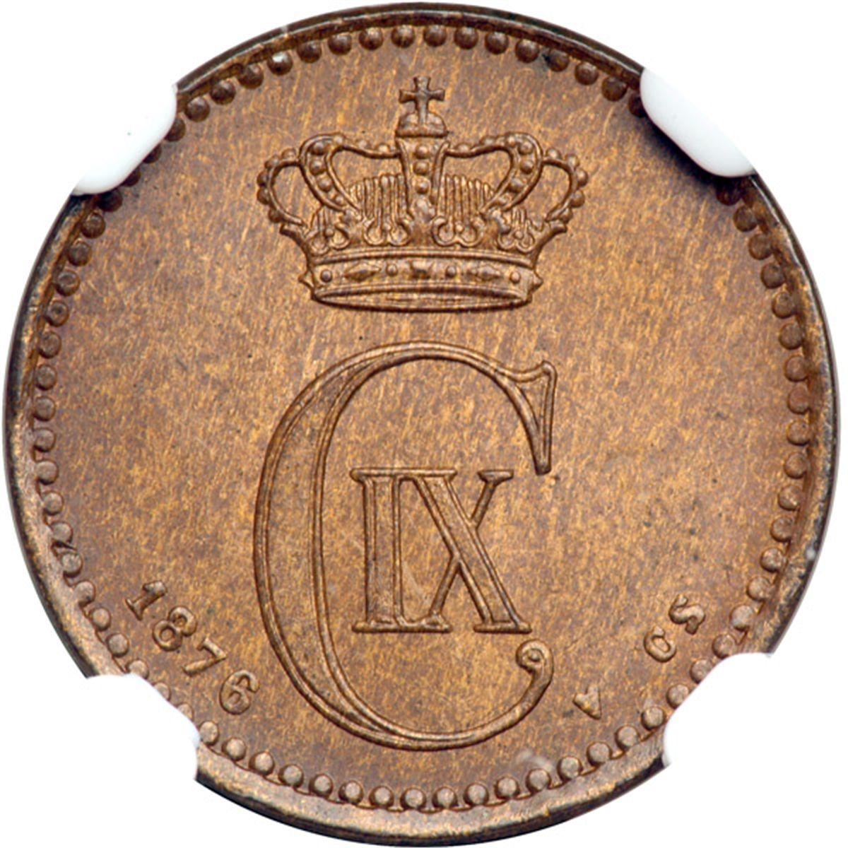 Denmark. Ore, 1876-CS. KM-792.1. Christian IX. Rare Date. NGC graded MS-66 Brown.