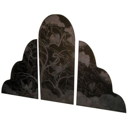 <tr><td>Title:Dennis Abbe Etched Amber Glass Triptych </td></tr>