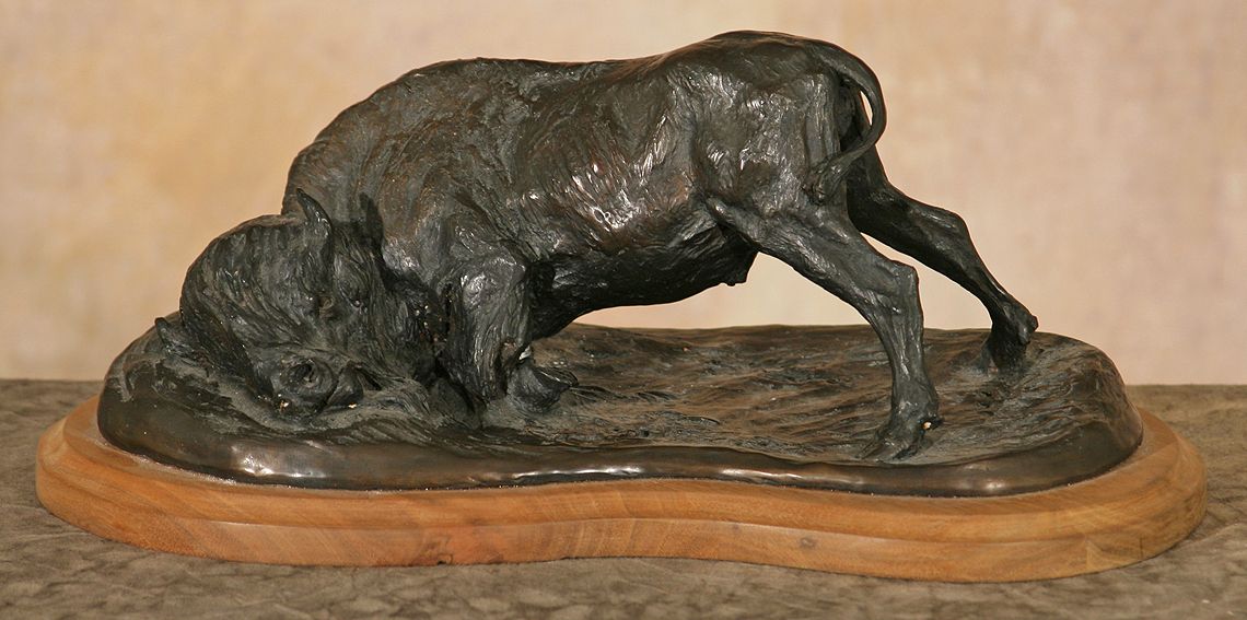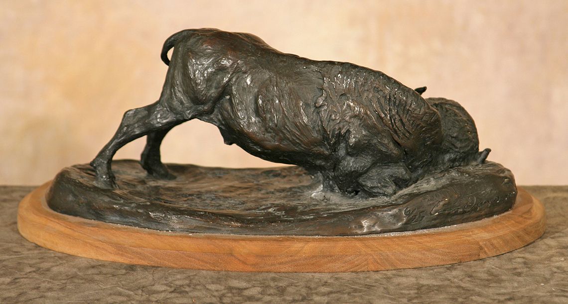 Dennis Anderson (1940-2005). Buffalo. 5" x 13" x 6 ½" bronze #6/25. Inscribed: Anderson ©. (est. $300-600). Provenance: The S. George & Helen Binson Estate, donated to the Cheyenne Frontier Days Old West Museum (Cheyenne, WY).. CONDITION REPORTS: www.auctioninsantafe.com/docs/cr2012.pdf