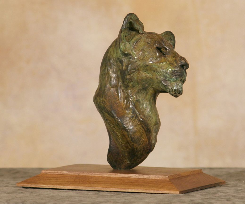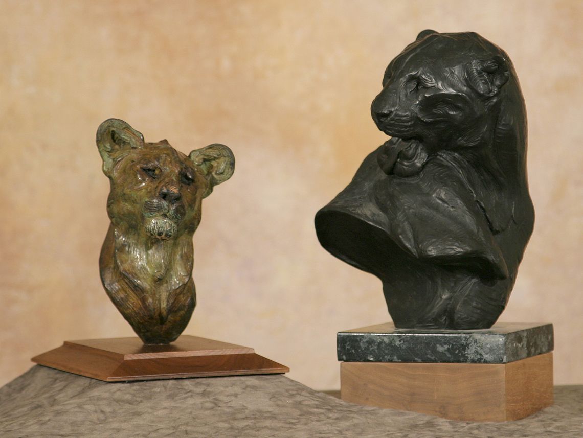 Dennis Anderson (1940-2005). Two bronzes. 1. Lioness. 7 ½" x 5 ½" x 5" bronze. Inscribed: Anderson 2 ©. 2. Mountain Lion. 9 ½" x 7 ½" x 6 ½" bronze #8/35. Inscribed: Anderson © 1987. (est. $1,000-1,500). Provenance: The S. George & Helen Binson Estate, donated to the Cheyenne Frontier Days Old West Museum (Cheyenne, WY).. CONDITION REPORTS: www.auctioninsantafe.com/docs/cr2012.pdf