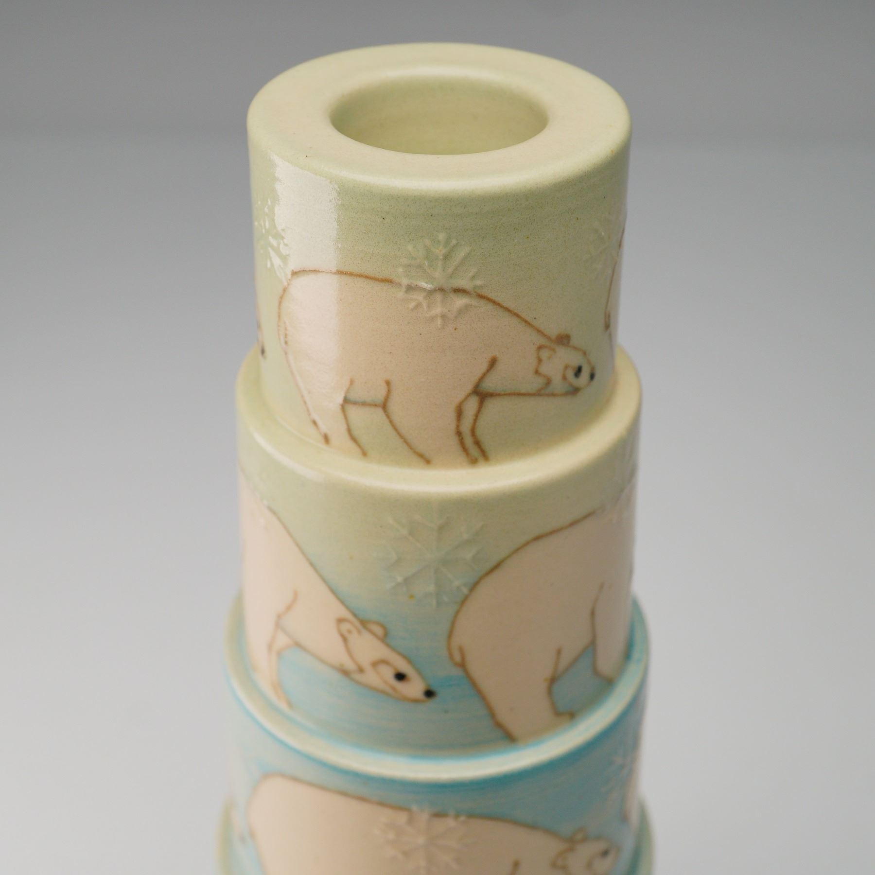 Dennis Chinaworks Pottery by Sally Tuffin Candlestick, Polar Bear on Blue