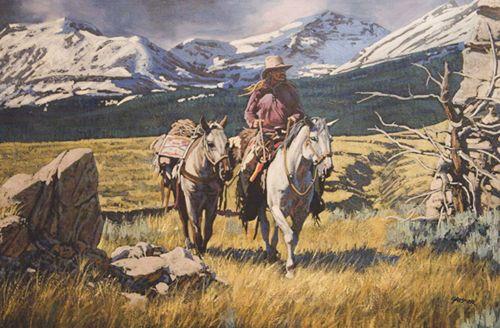 Dennis Grismer (20th). "High Country Packin". 24" x 36". Oil on Canvas. (est $3,000-4,000)