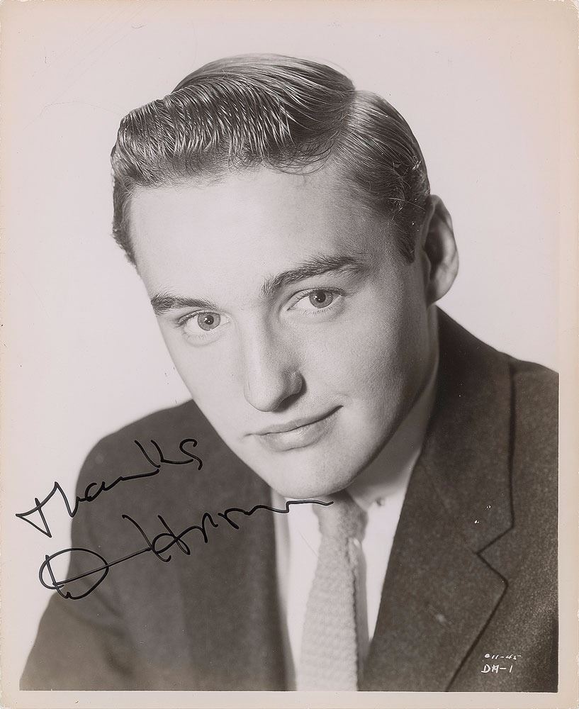 Glossy 8.25 x 10 studio portrait of a young Hopper, signed in black felt tip, "Thanks, D. Hopper." In fine condition, with scattered light creasing. From the Harvey and Rhoda Kuflik Collection.