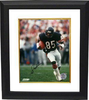 Dennis McKinnon won Super Bowl XX as a member of the 1985 Chicago Bears. In his eight seasons, McKinnon caught 194 passes for 3,012 yards and 22 touchdowns. He also returned 129 punts for 1,191 yards and three touchdowns, and scored a rushing touchdown. He caught 31 passes for 555 yards and seven touchdowns during the Bears' championship season in 1985. At the time of his retirement, McKinnon's 1,191 punt return yards were the second highest total in Chicago franchise history. Dennis McKinnon has hand autographed this Chicago Bears 8x10 Color Photo. A member of the 1986 Super Bowl Champions. Certificate of Authenticity from Athlon Sports. Custom White Mat and Premium Black Framed as shown.