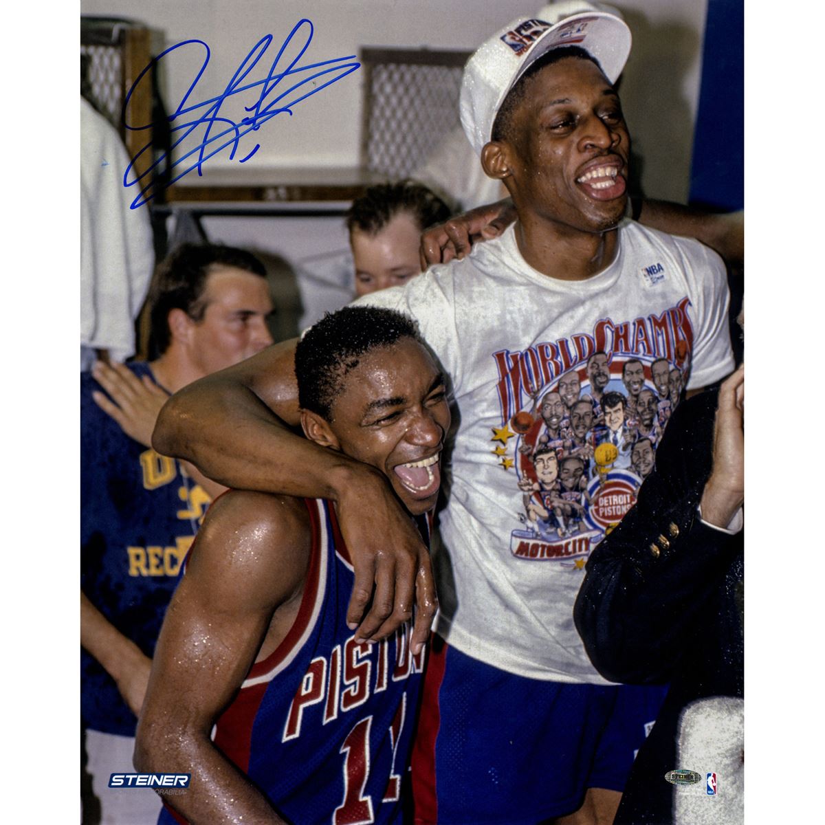 Dennis Rodman Celebrating w/ Isiah Thomas Signed 16x20 Photo