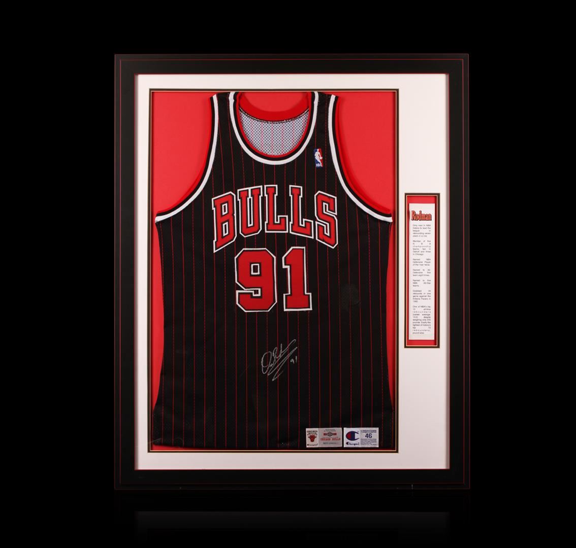 Dennis Rodman Framed Autographed Jersey. Comes with Certificate of Authenticity.