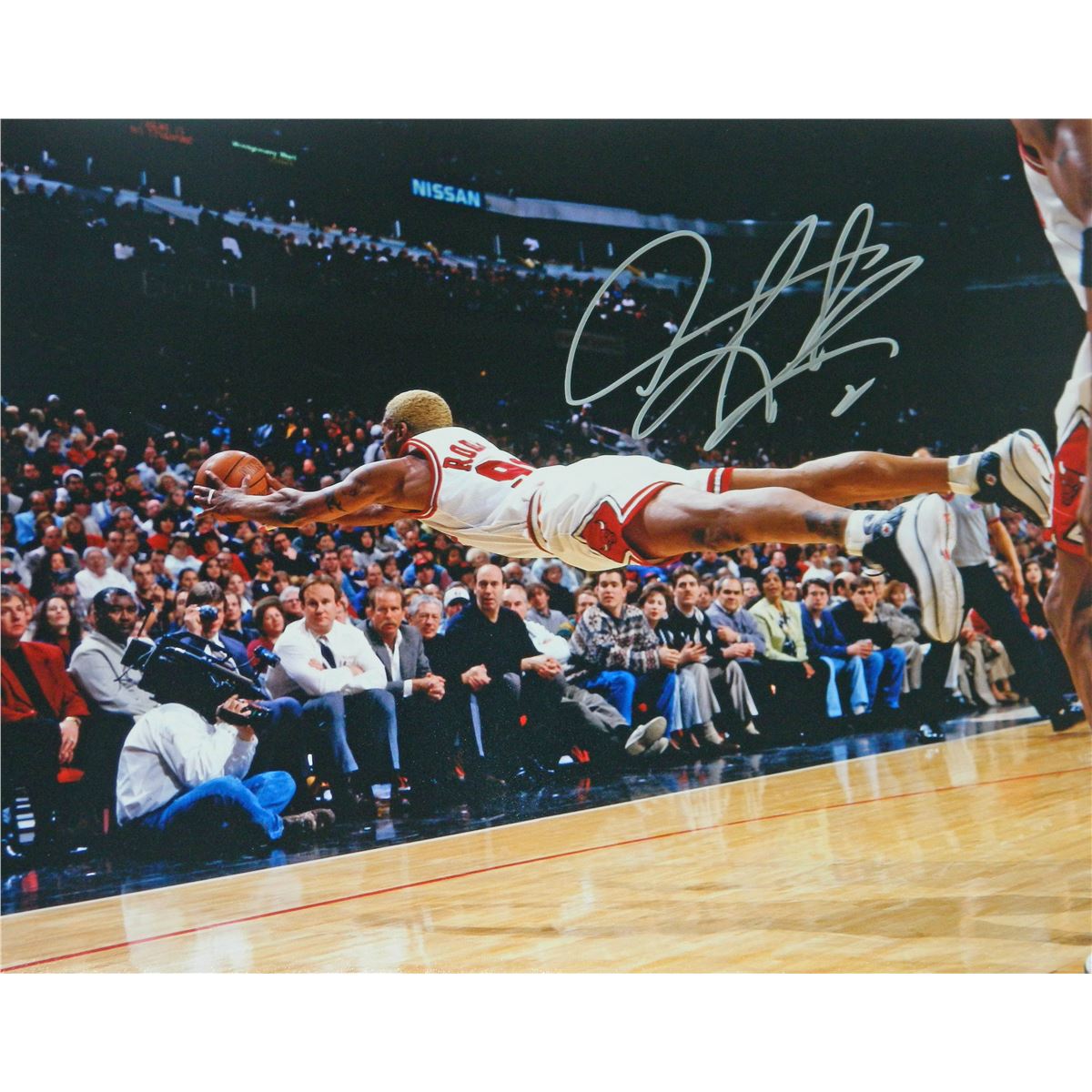 Dennis Rodman signed Bulls diving action 16x20 photo. Item comes with a Schwartz Sports Memorabilia tamper-proof numbered hologram and Certificate of Authenticity which can be verified online.