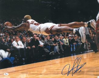 Dennis Rodman is a retired American Hall of Fame professional basketball player, who played for the Detroit Pistons, San Antonio Spurs, Chicago Bulls, Los Angeles Lakers, and Dallas Mavericks in the NBA. He was nicknamed "The Worm" and was known for his fierce defensive and rebounding abilities. Playing small forward in his early years before becoming a power forward, Rodman earned NBA All-Defensive First Team honors seven times and was voted NBA Defensive Player of the Year twice. He led the NBA in rebounds per game for a record seven consecutive years and won five NBA championships. Dennis Rodman has hand signed this Chicago Bulls 16X20 Photo. JSA Hologram and Certificate of Authenticity from Athlon Sports.