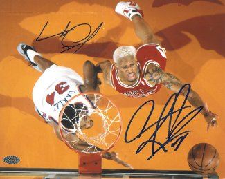 Dennis Rodman is a retired American Hall of Fame professional basketball player, who played for the Detroit Pistons, San Antonio Spurs, Chicago Bulls, Los Angeles Lakers, and Dallas Mavericks in the NBA. He was nicknamed "The Worm" and was known for his fierce defensive and rebounding abilities. Playing small forward in his early years before becoming a power forward, Rodman earned NBA All-Defensive First Team honors seven times and was voted NBA Defensive Player of the Year twice. Charles Oakley eventually became a part of the core which the Knicks built around, which also featured Patrick Ewing, John Starks, and point guard Mark Jackson. During his tenure with the Knicks, Oakley was primarily known as a defensive specialist. Dennis Rodman and Charles Oakley have both hand signed this Chicago Bulls/ New York Knicks 8x10 Photo. Leaf Hologram and Certificate of Authenticity from Athlon Sports.