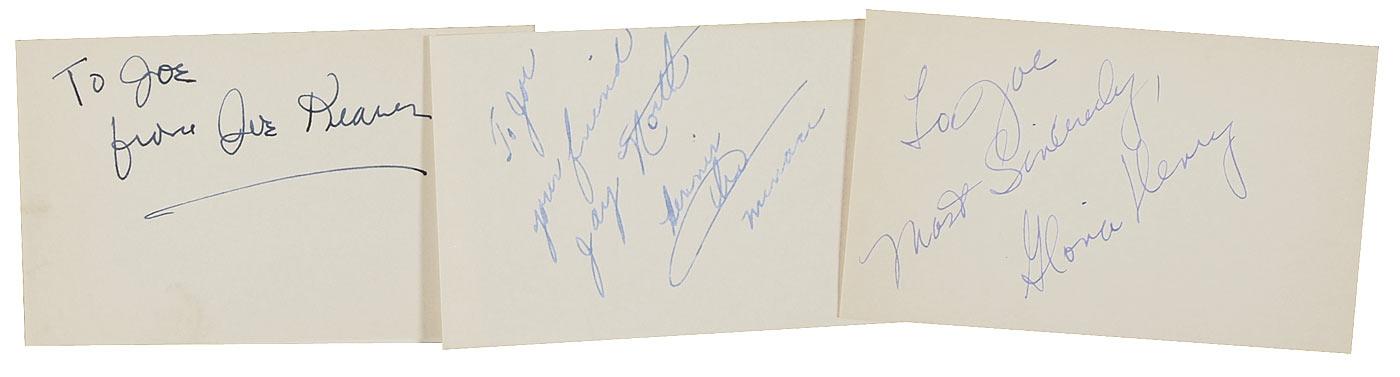 In-person ink signatures and inscriptions of Jay North, adding “Dennis the Menace,” Gloria Henry, and Joe Kearns on individual off-white 5 x 3 cards. In fine condition.
