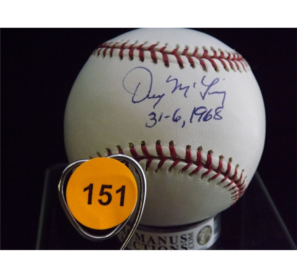 Denny McClain Autographed Baseball. Rawlings Official MLB. Appraised or estimated retail value $400. COA by Field of Dreams. All Sales Final. Please see terms and conditions of auction.
