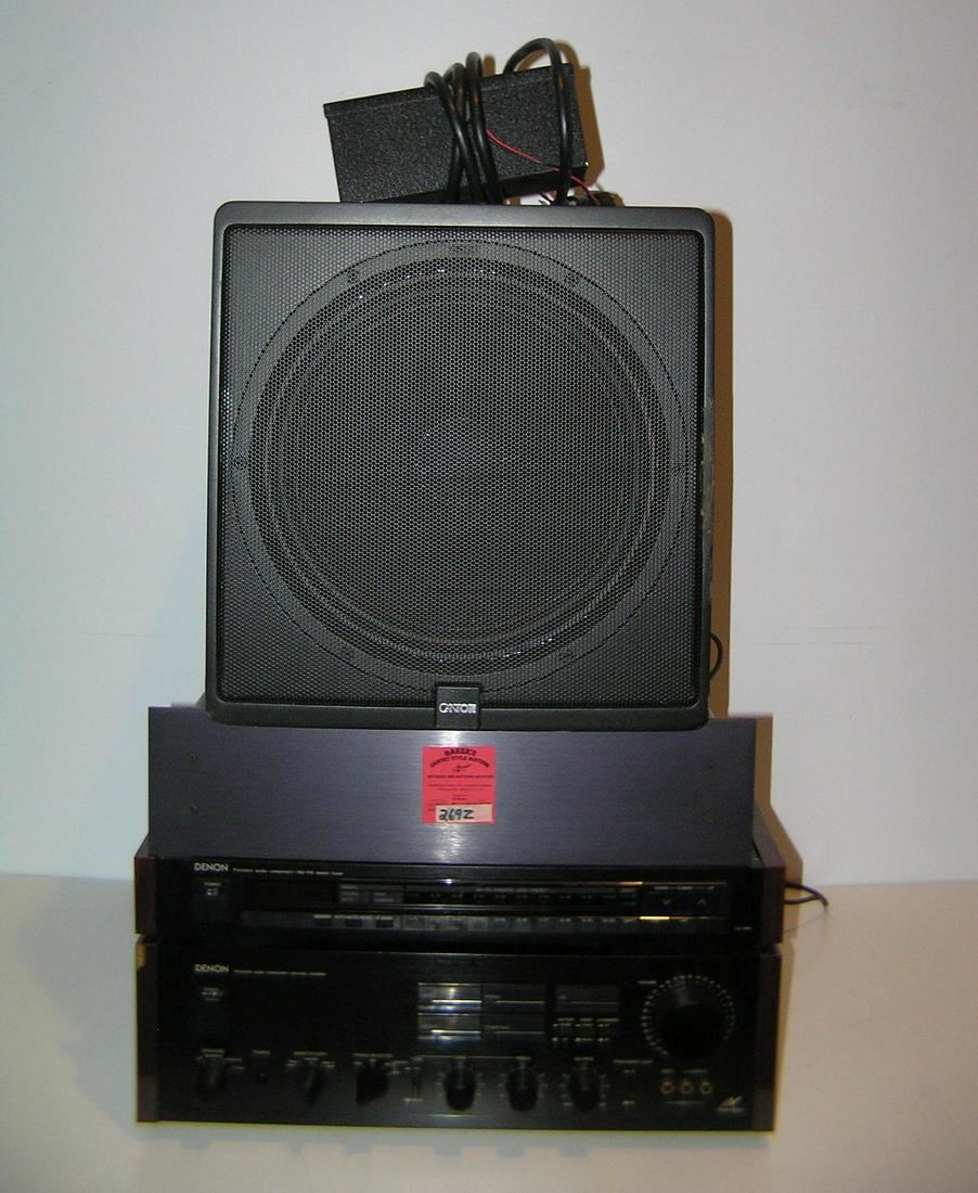 4 piece Denon precision audio component stereo system with Canton speaker unit and multi outlet universal box est. value $225.00-$250.00
