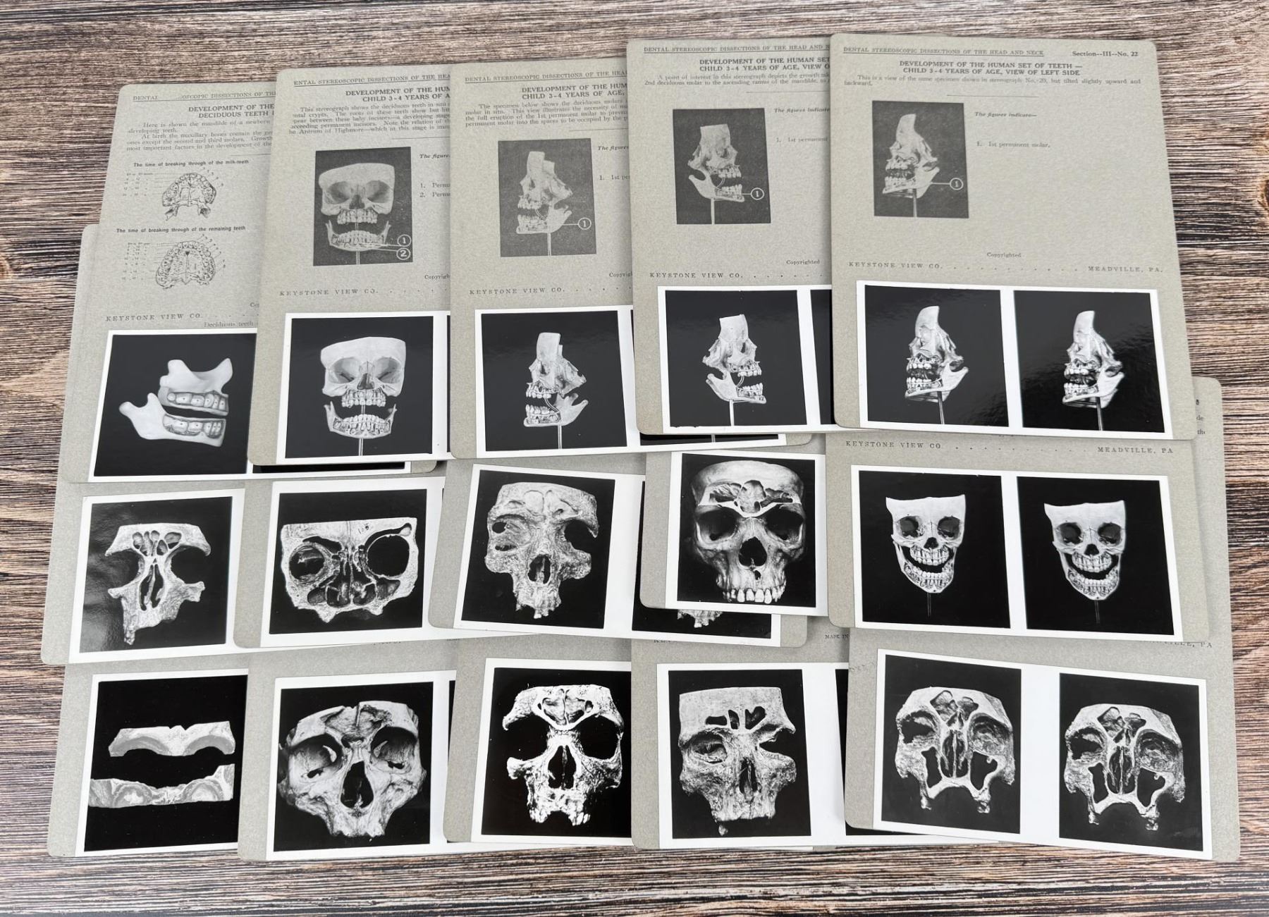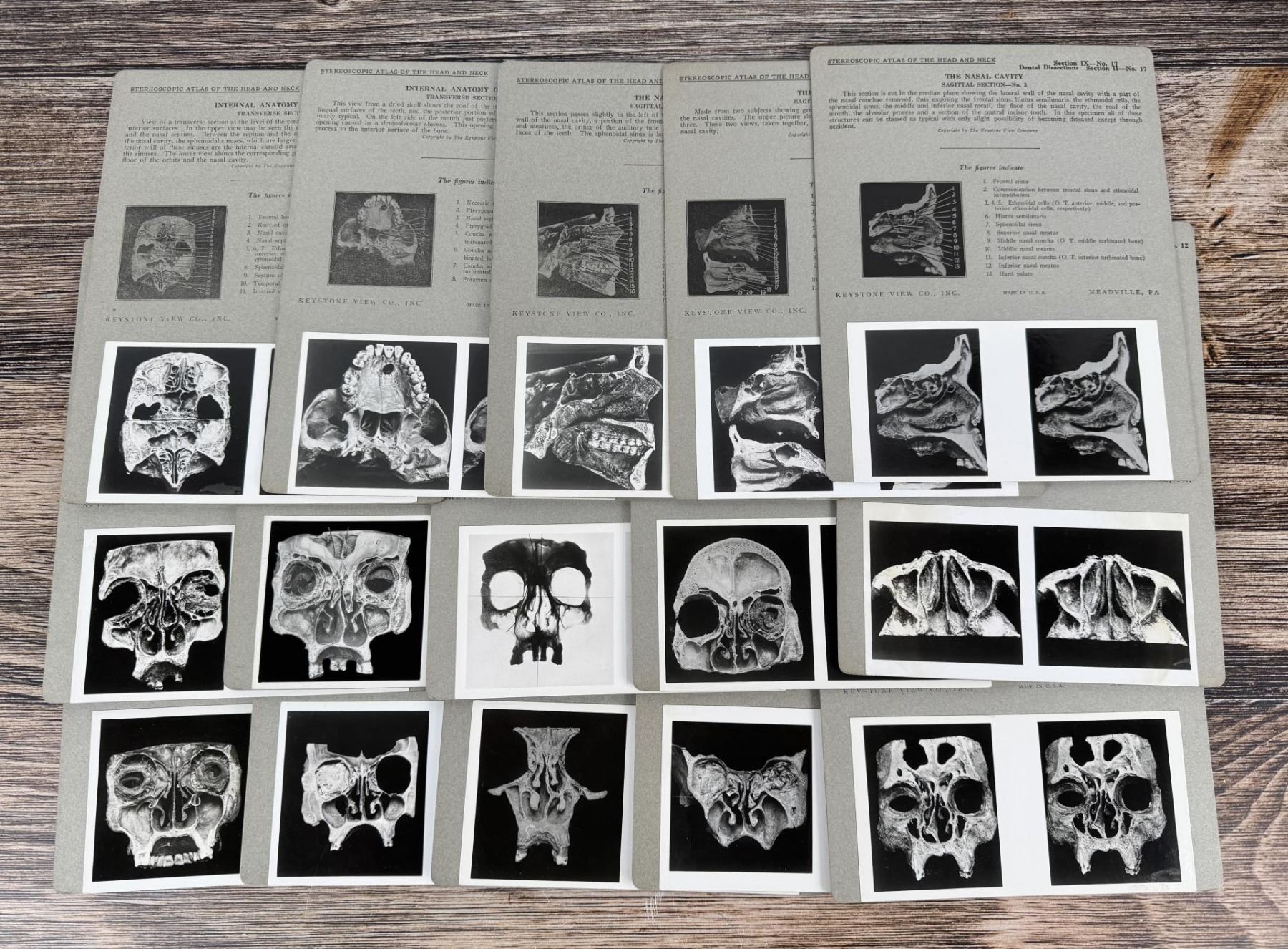 From The Edinburgh Stereoscopic Atlas Of Anatomy and The Keystone View Company. The three sections are complete, and there are some extra cards that go to the series Diseases Of The Skin. 91 cards total.