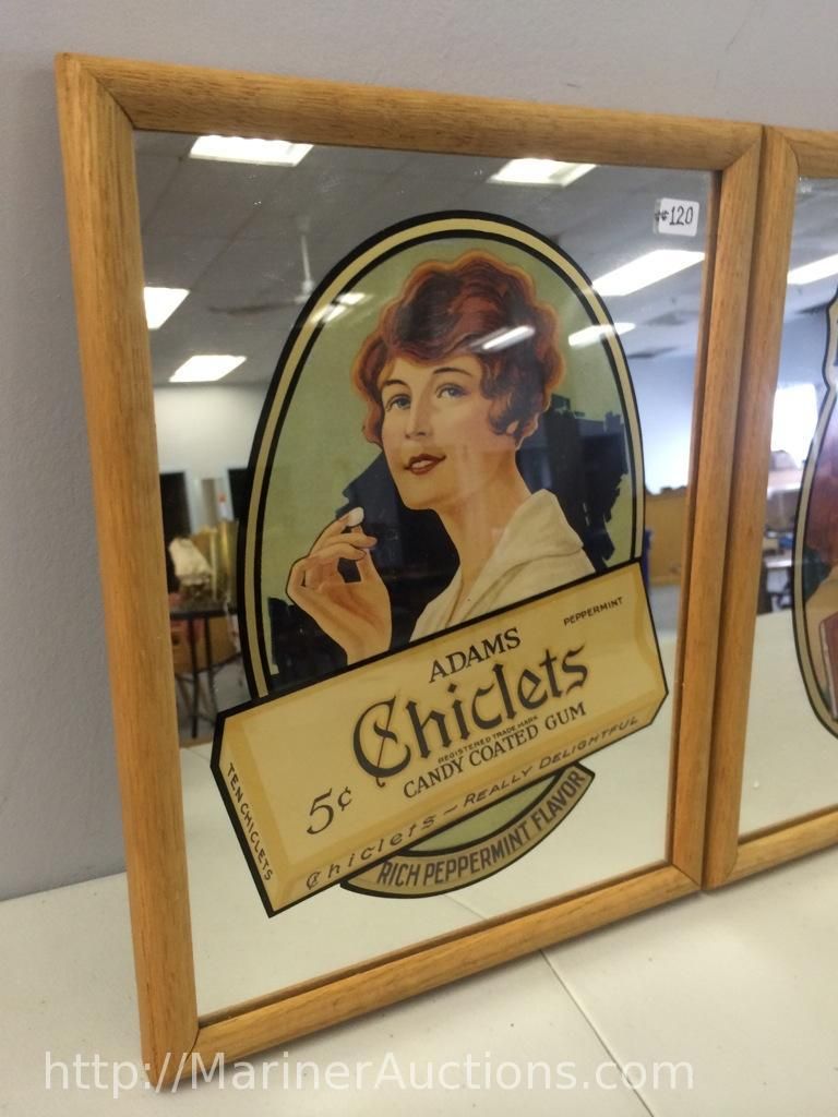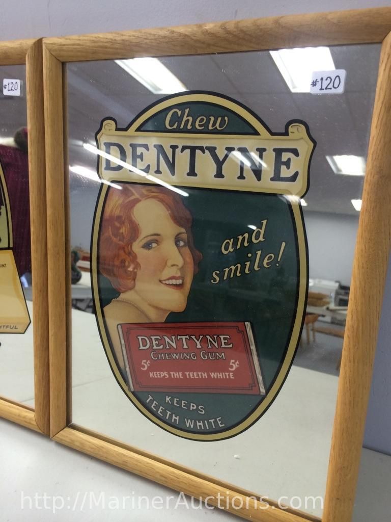 Dentyne and Chiclets Framed Advertising Mirrors (10" X 13" including frame)