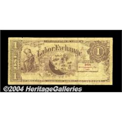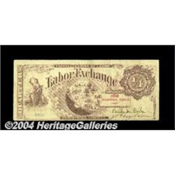 Denver, CO- Labor Exchange 1/4 1897 Fine-Very FinePowell, OH- Labor Exchange 1/100 1897 Good, severed in three pieces and repairedWilliamsport, PA- Labor Exchange 1 Unit 1897 Fine, splits and writing on backThree Labor Exchange items, the second quite rare but with problems. 3 notes <BR><BR><B>Important notice:</B> Heritage usually auctions material at the rate of 200-250 lots per hour. On some occasions eBay Live bid software or the Internet may not be able to keep up with the pace of the auction. We recommend placing a realistic absentee bid now as insurance to avoid disappointment. Occasionally the auctioneer may eliminate or reject an eBay Live bid, and the auctioneer may also reopen a lot after the close of the eBay live bidding (usually because we missed an audience bid), and may reject your bid even if it shows you as the winning bidder. By bidding via eBay Live, you agree that Heritage may award the lot to another bidder at its sole discretion under the circumstances described above or any other reasonable circumstances. Since eBay bids are not shown to us until we open the lot on the floor, we treat those bids just like floor bids. In most cases the floor responds before the eBay bid is presented to us, due to Internet lag time, so for consistency we have made it a policy that floor bids are always considered first over tie eBay live bids. Also please note that all Heritage lots purchased through eBay Live carry a 20% Buyer's Premium. Please make sure you read the Terms and Conditions before you bid. <BR><BR><B>IMPORTANT ANNOUNCEMENT ABOUT RESERVES:</B> Heritage now divulges all reserves on its web site 7 days before every auction. If you want to know whether the reserve on this lot has been met, and if not, what the reserve amount is, please visit this lot page on the HeritageCoin.com web site, or email: bid@HeritageGalleries.com