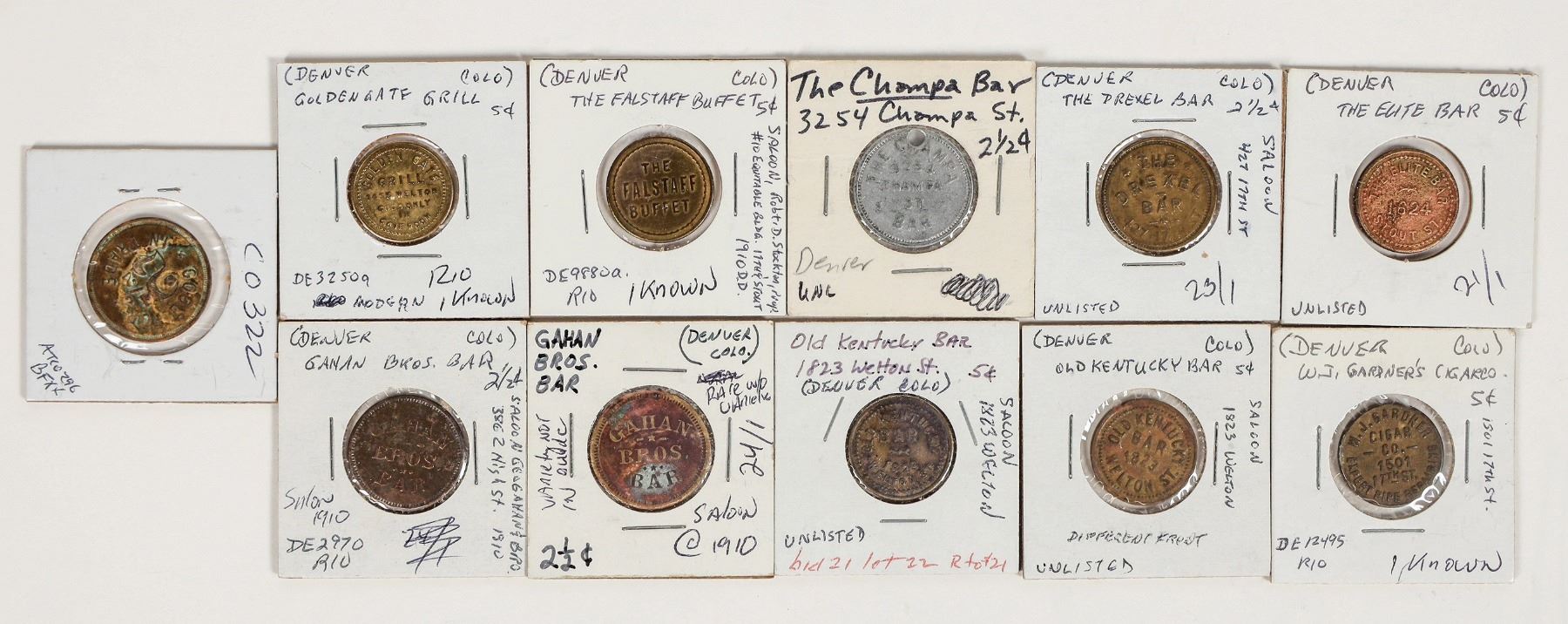 Ten different maverick tokens, one known in Pritchard's reference book.