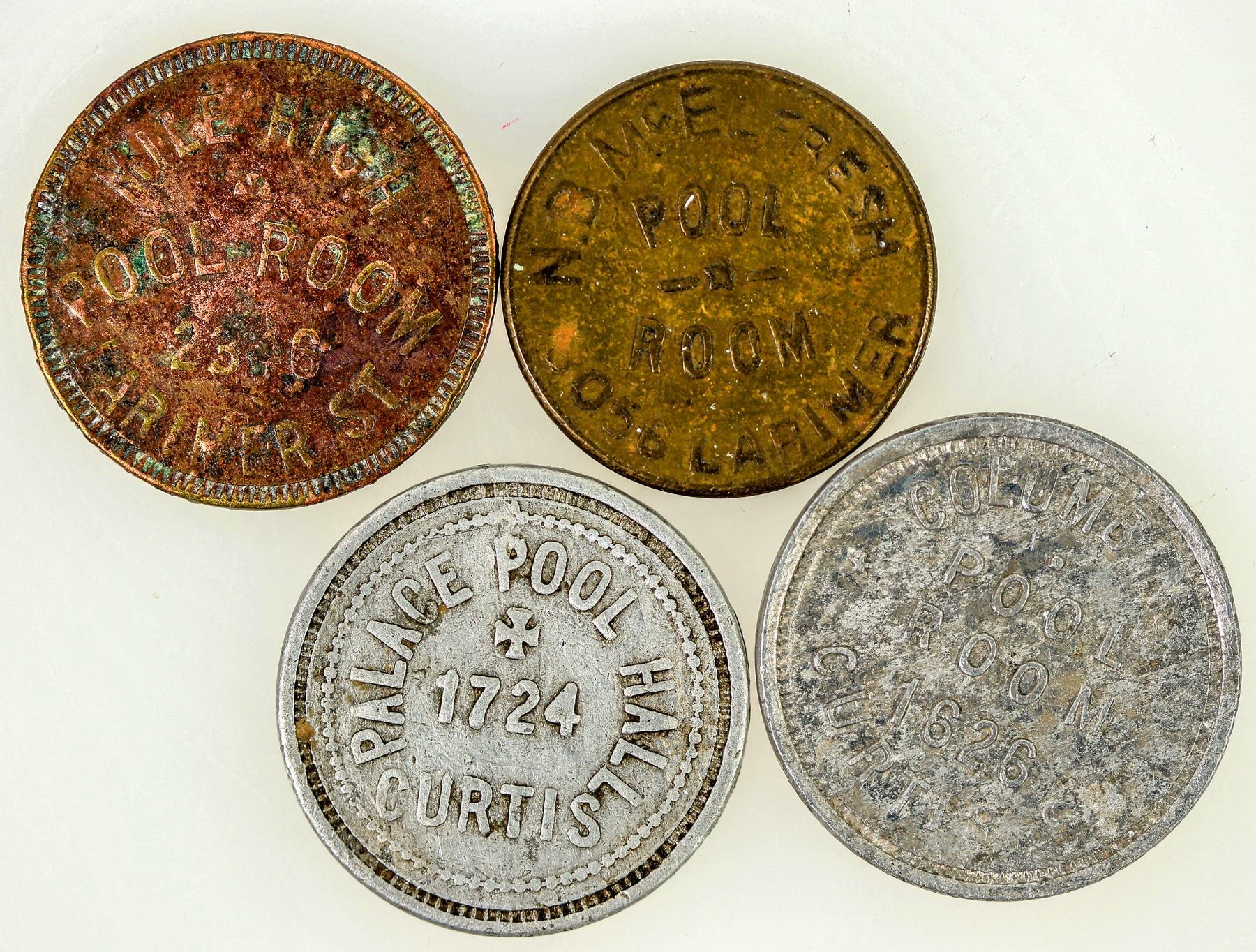 Denver, CO Mavericks pool rooms tokens. Unlisted in Pritchard 2004. 4 pcs, see photo.