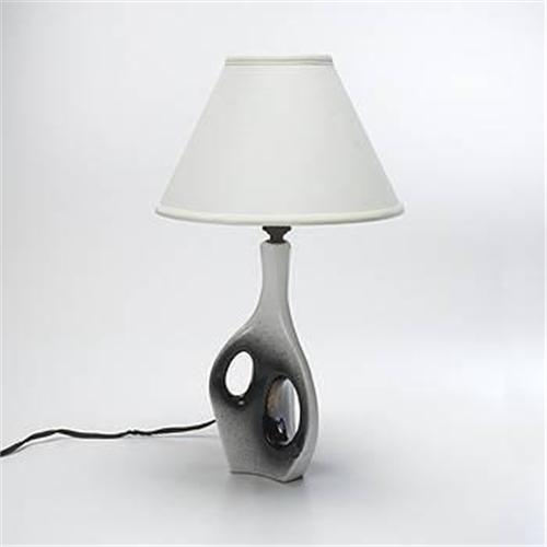 Denyse Gatard table lamp France, c. 1950 glazed earthenware, metal, linen 9"dia x 17"h A rare lamp created by the sister of Georges Jouve. <BR>Literature: La Ceramique Francaise des annees 50's, Staudenmeyer, pg. 69