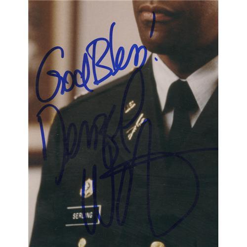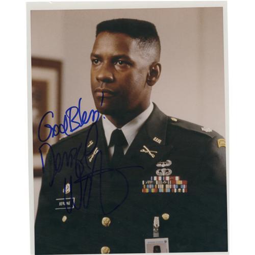 <B>Denzel Washington Signed Photo.</B></I> A color 8" x 10" promo photo from <I>Courage Under Fire,</B></I> inscribed and signed by the actor in blue marker, in Excellent condition.<BR><BR><b>Shipping:</b> Flat Material, Small (<a target="_blank" href="http://www.heritageauctions.com/common/shipping.php">view shipping information</a>) <BR><BR><B>Important notice:</