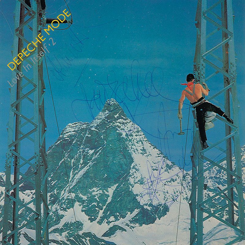 45 rpm record for ‘Love in Itself-2,’ signed on the color sleeve in blue ballpoint by all four members. In fine condition, with some light contrast to one signature.