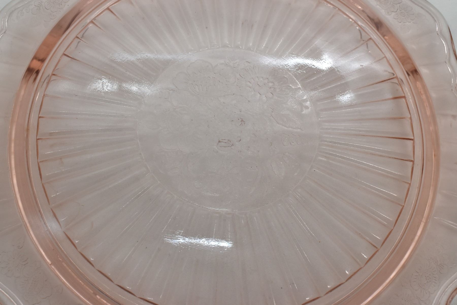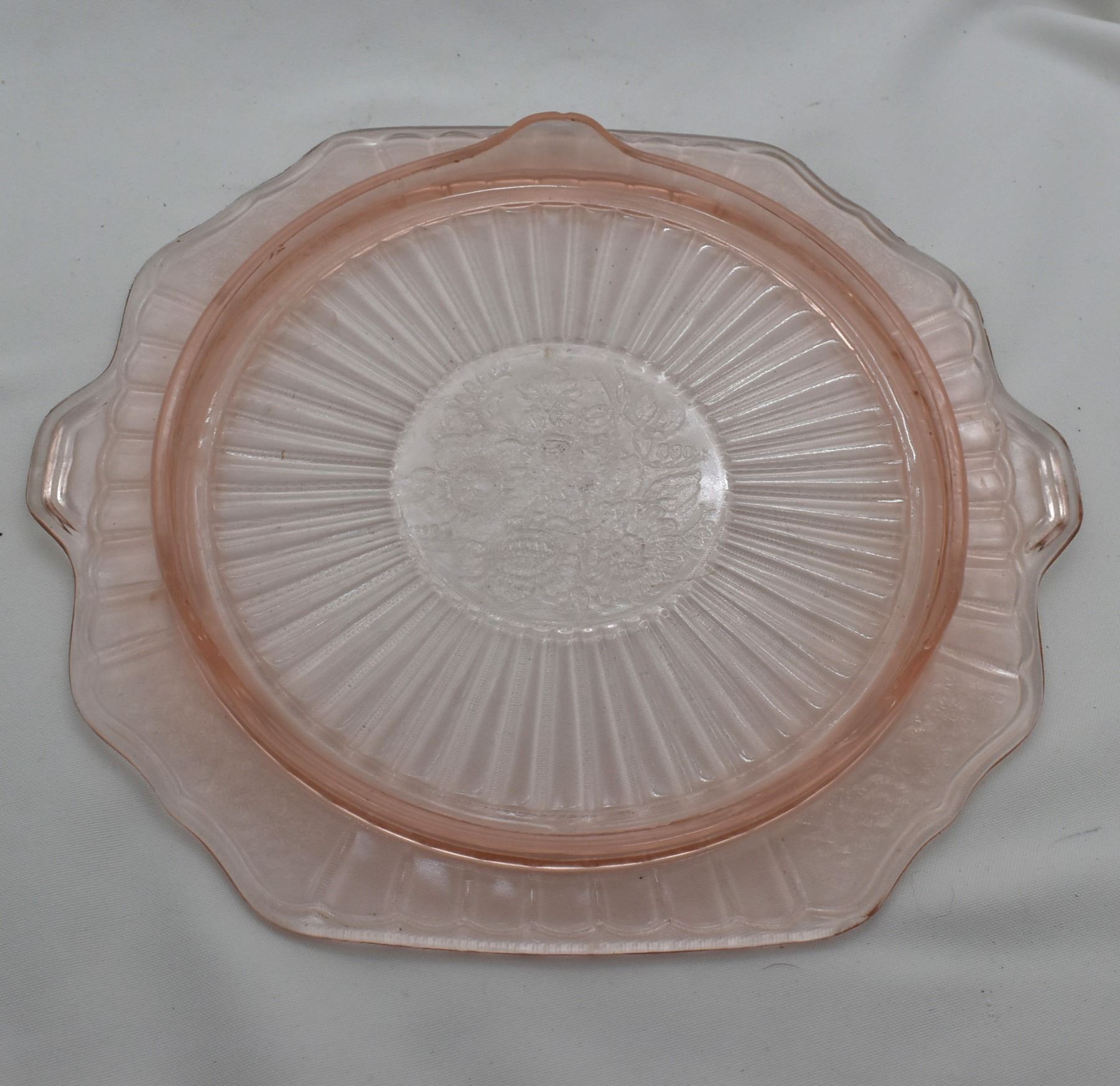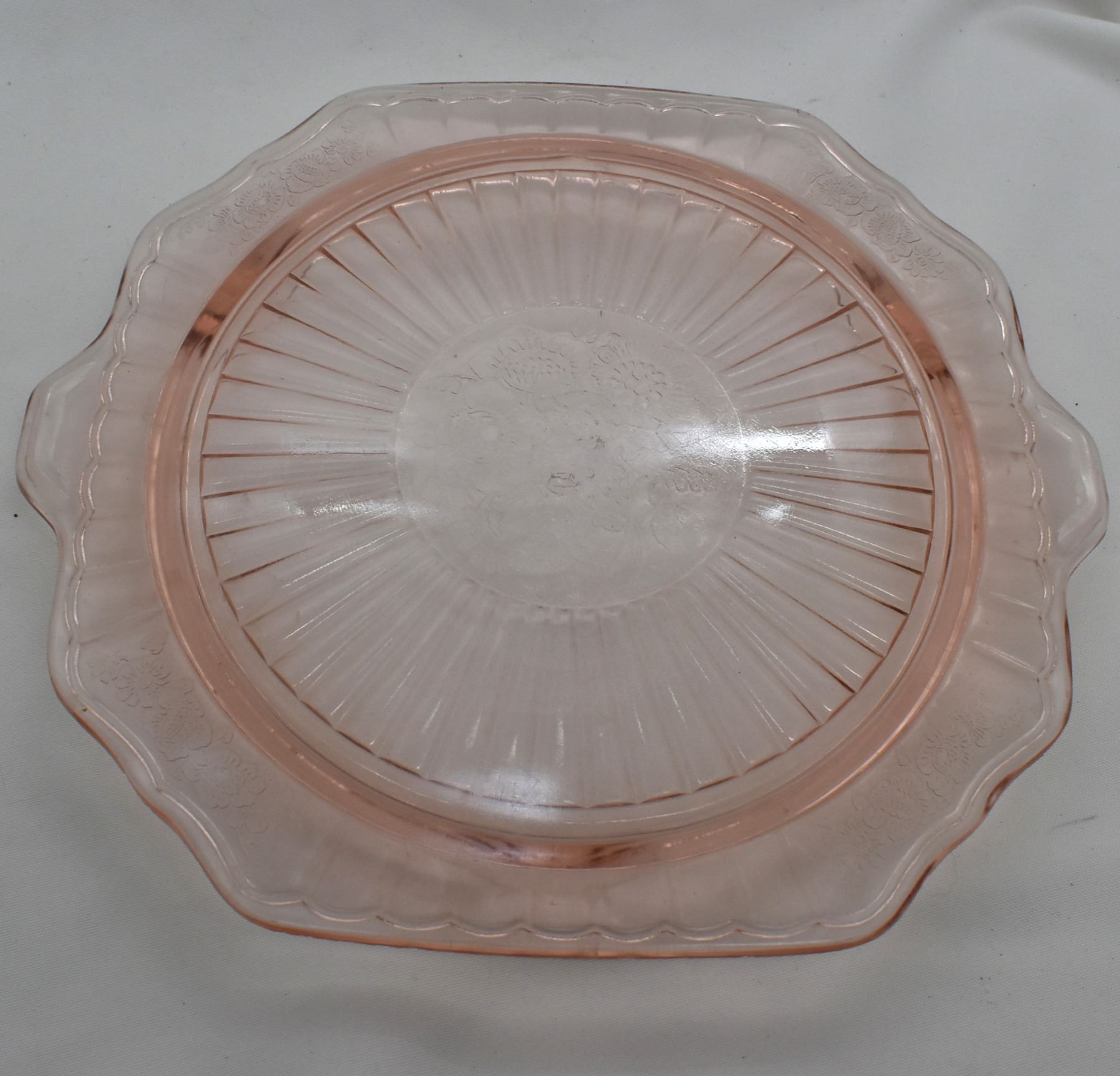Depression Glass Footed Cake Plate. This piece measures 11'' in diameter.