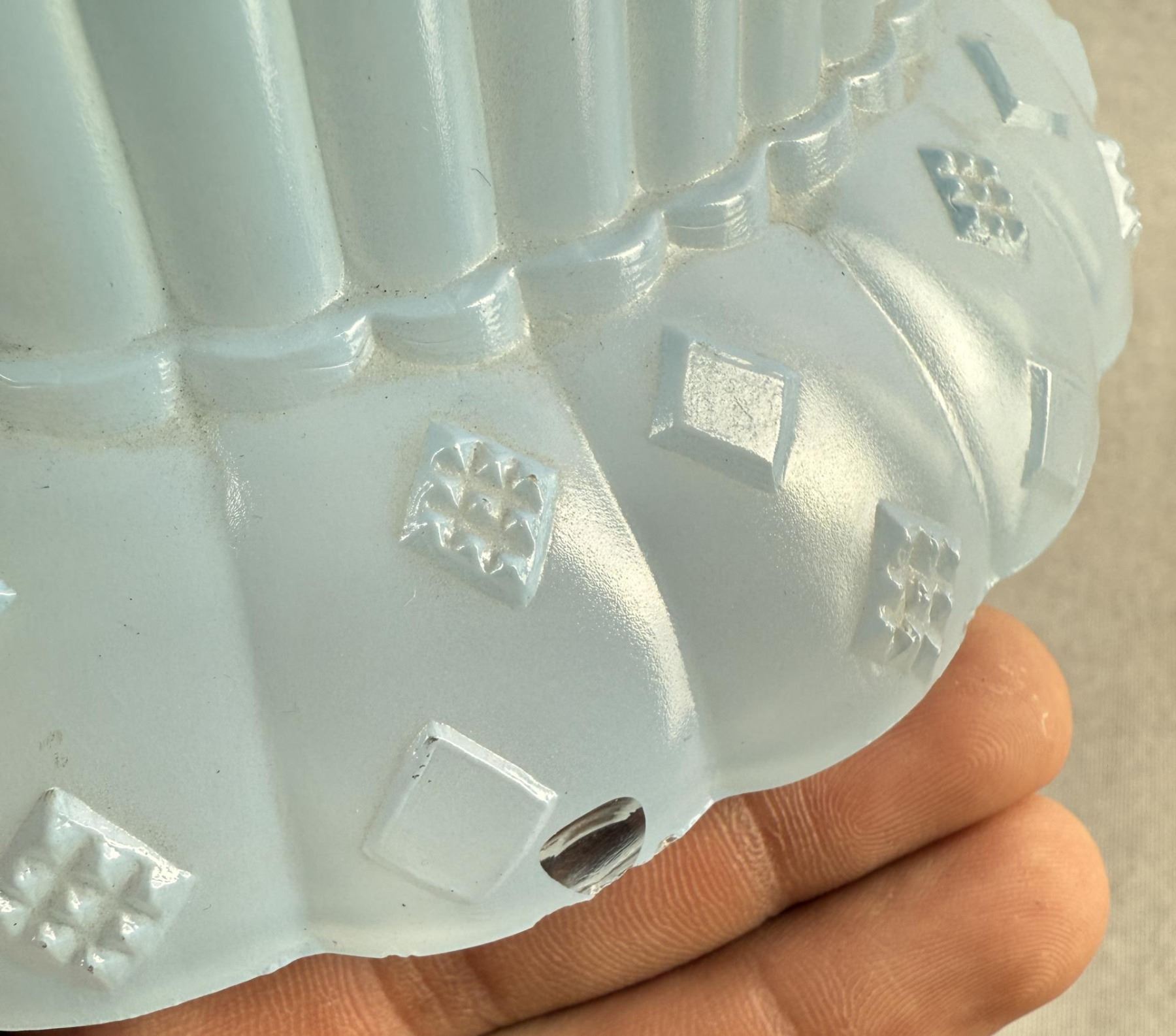 10 1/4" tall by 6 3/4" in diameter. Base is chipped as shown.