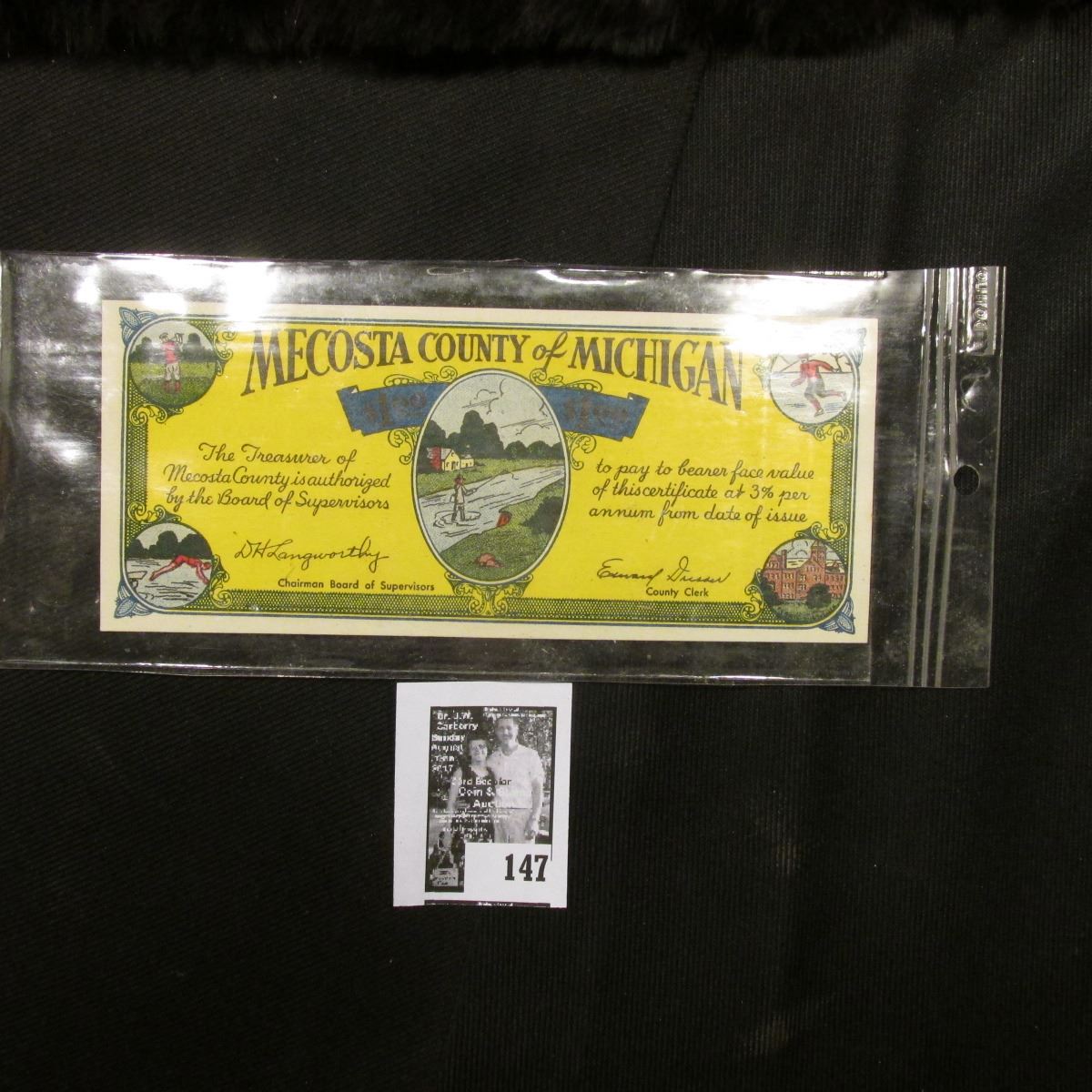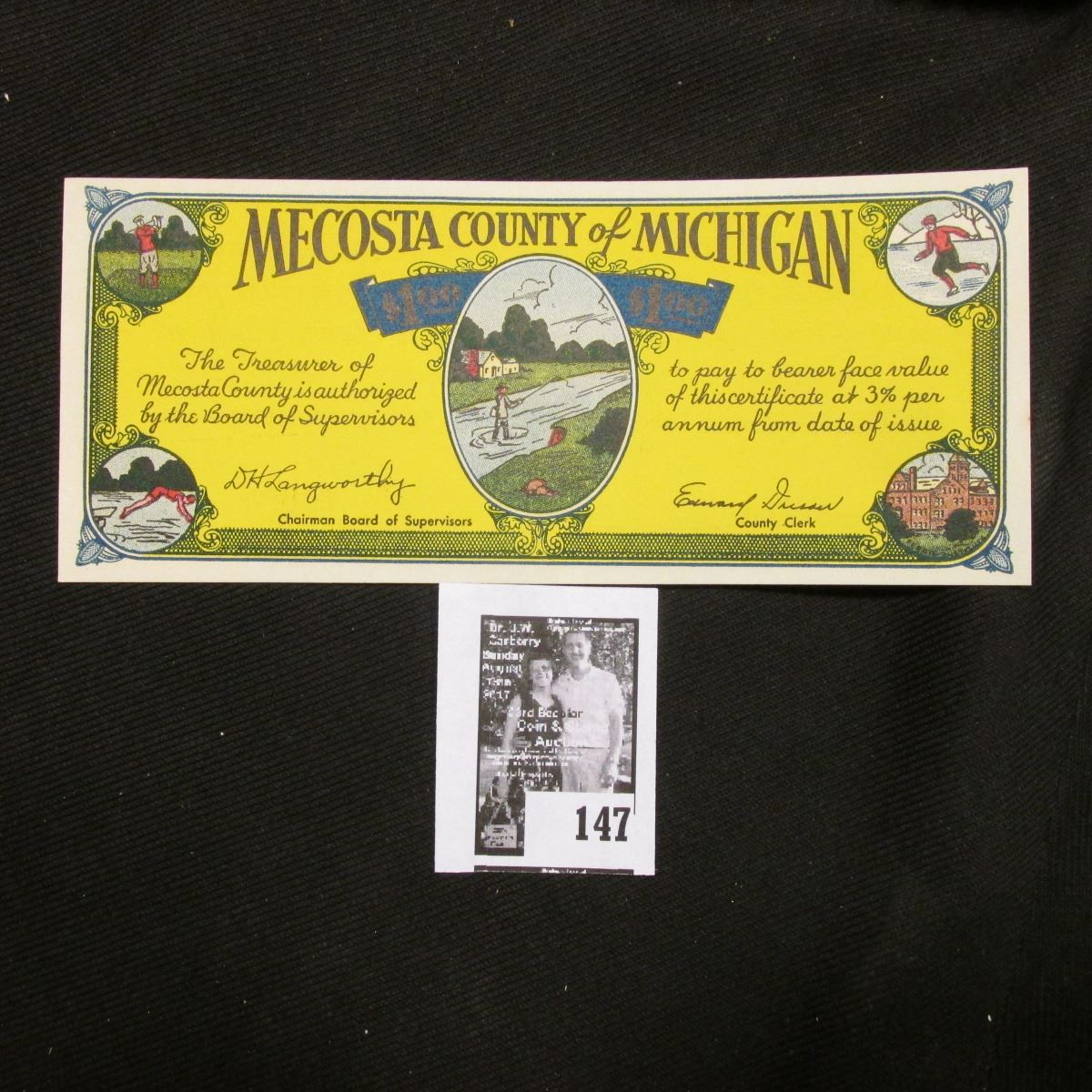 Depression Scrip Issued Under House Enrolled Act No. 51, Regular Session of 1933 No. 10085 "Mecosta County of Michigan" $1.00 Scrip, CU.