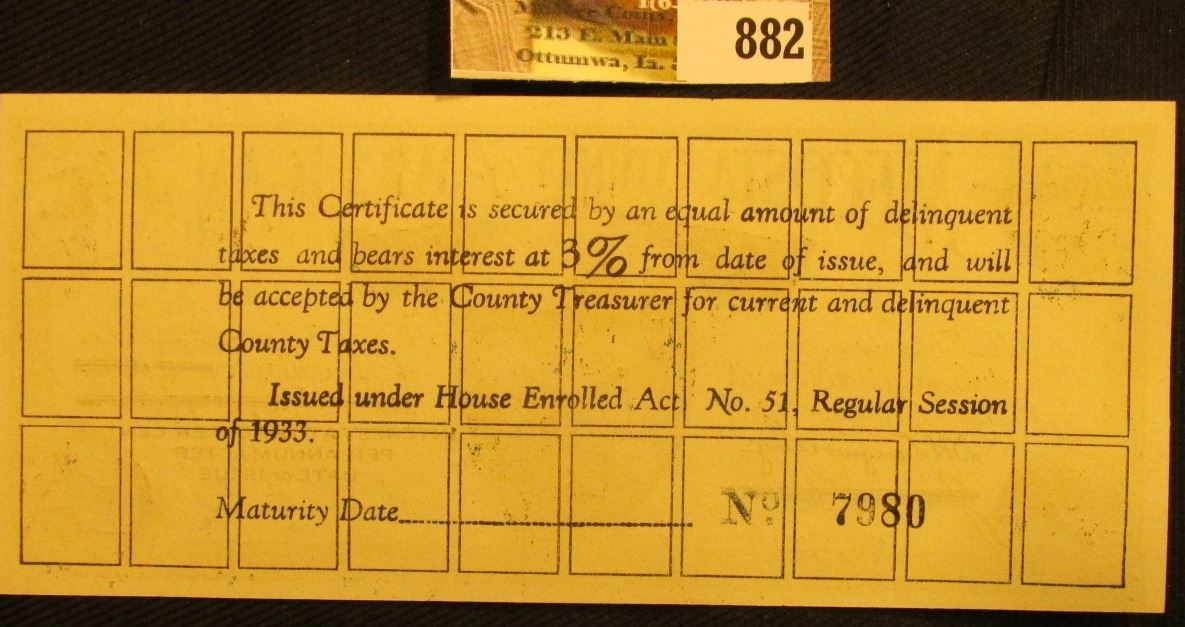 Depression Scrip "Issued under House Enrolled Act. No. 51, Regular Session of 1933" $1.00 "Mecosta C