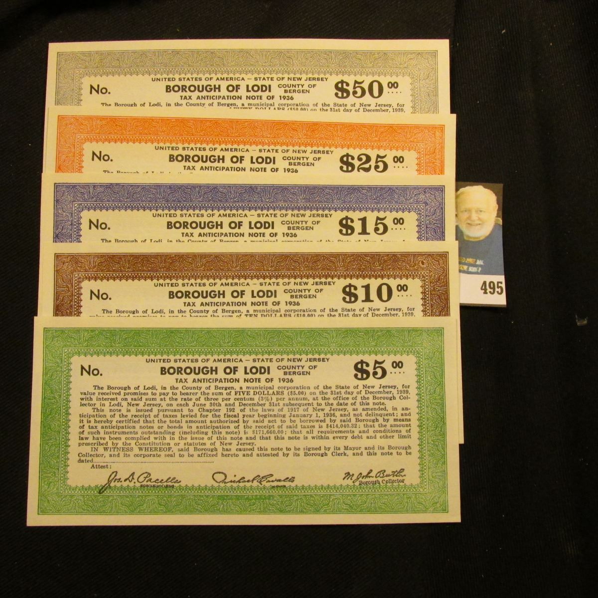 Depression Scrip, all Mint condition: $5, $10, $15, $25, & $50 Borough of Lodi-Tax Anticipation Note