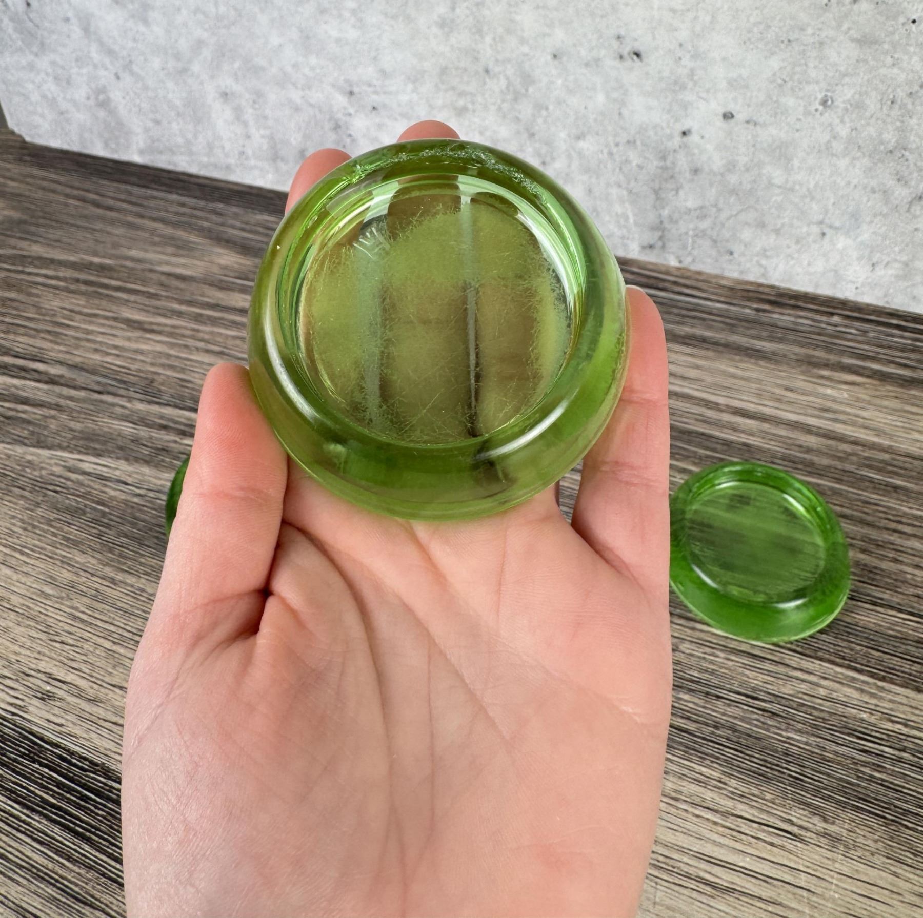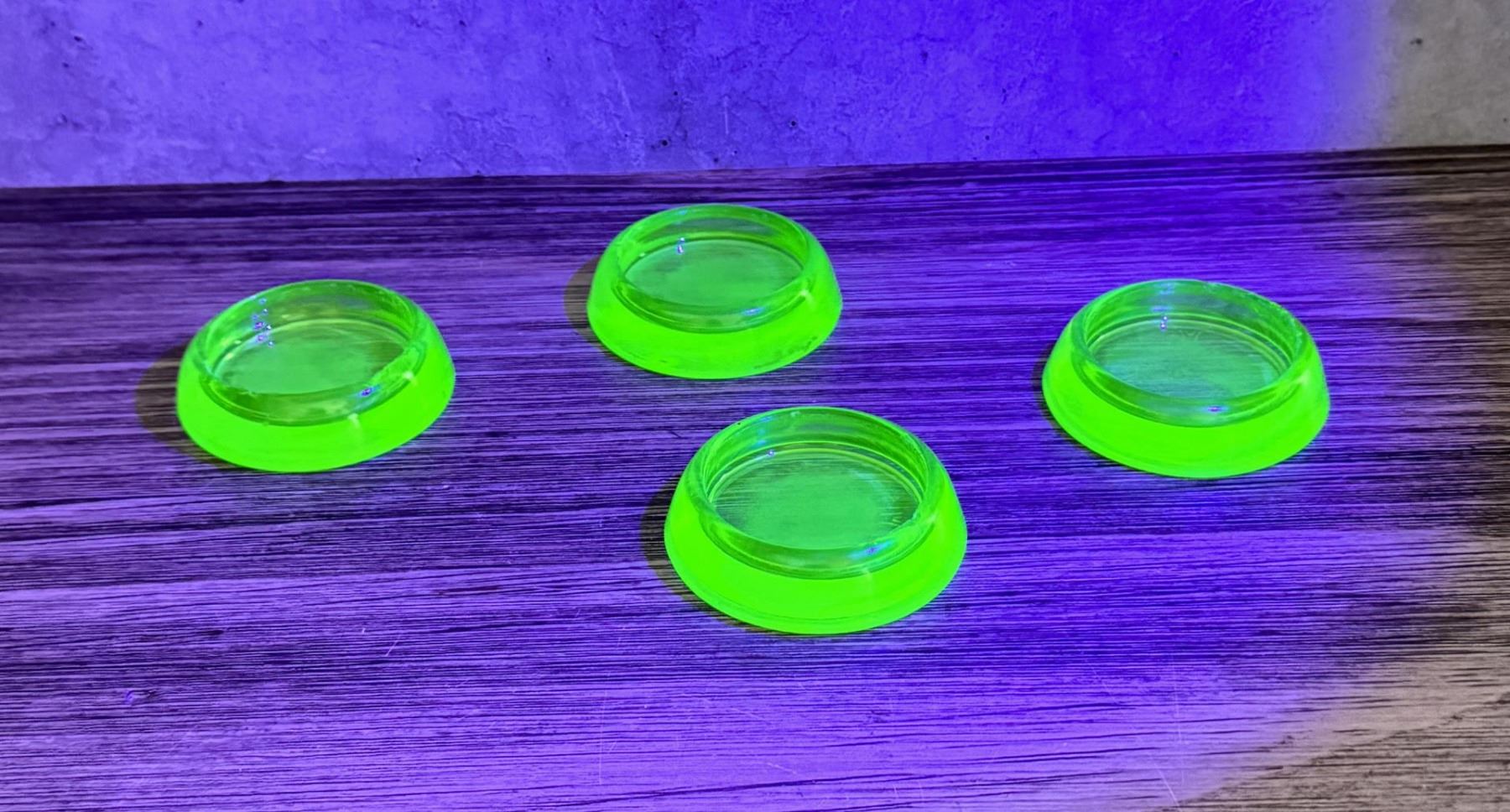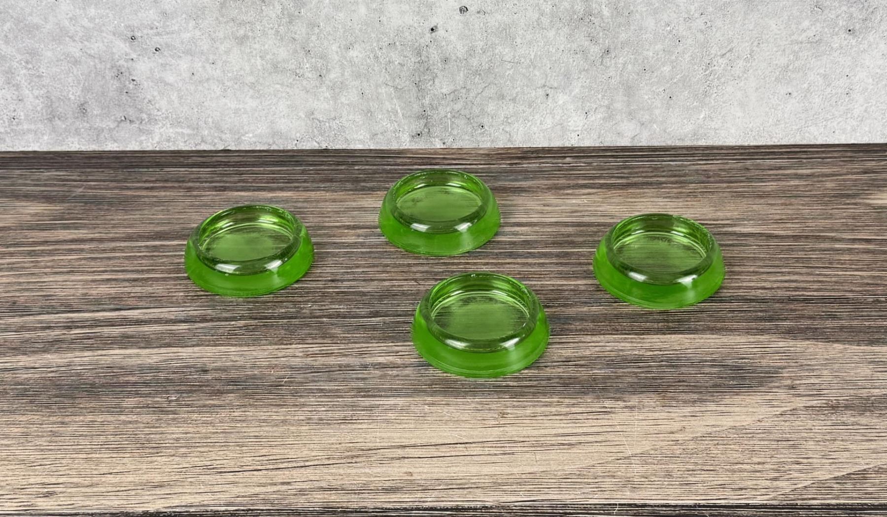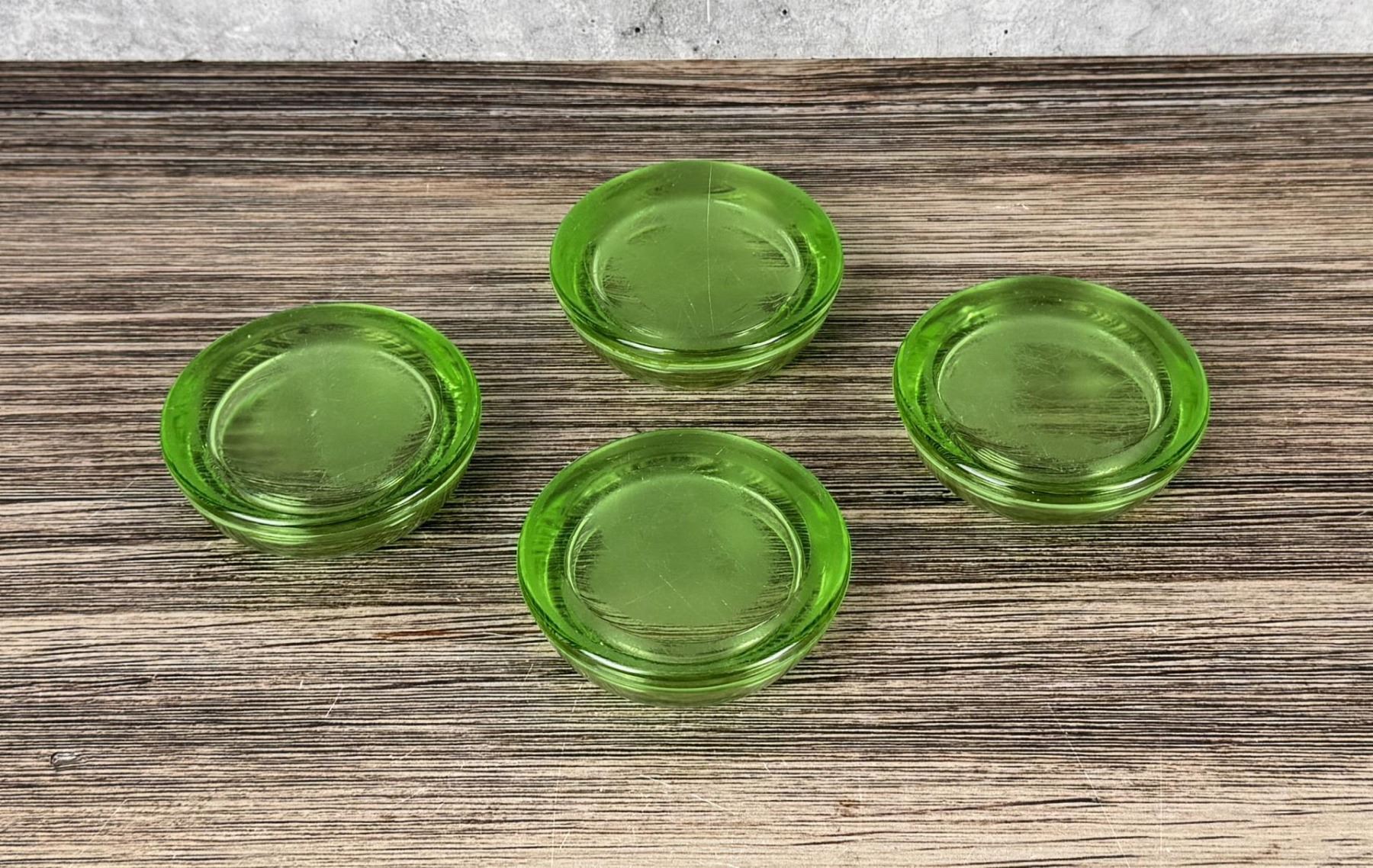 Four total. 3" in diameter. Marked Anchor Hocking.