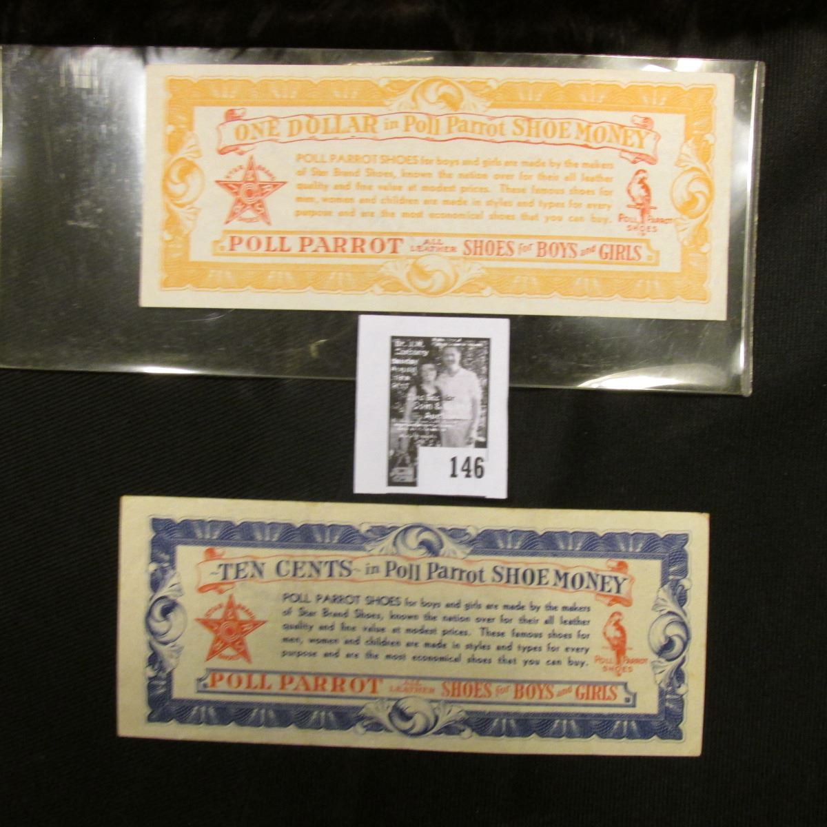Depression era 10c & $1 Poll Parrot Shoe Money, Malvern, Iowa.