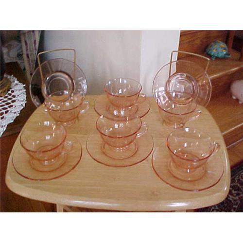 Depression glass cup and saucers,pink coffee(set of 6)