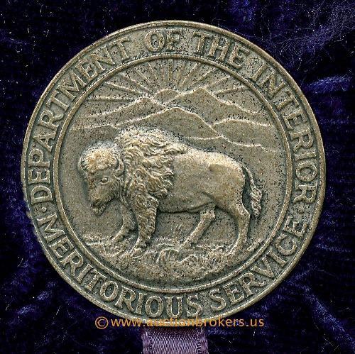 Dept of the Interior Meritorious service medal; Awarded to Helen L Brenner, name engraved on reverse