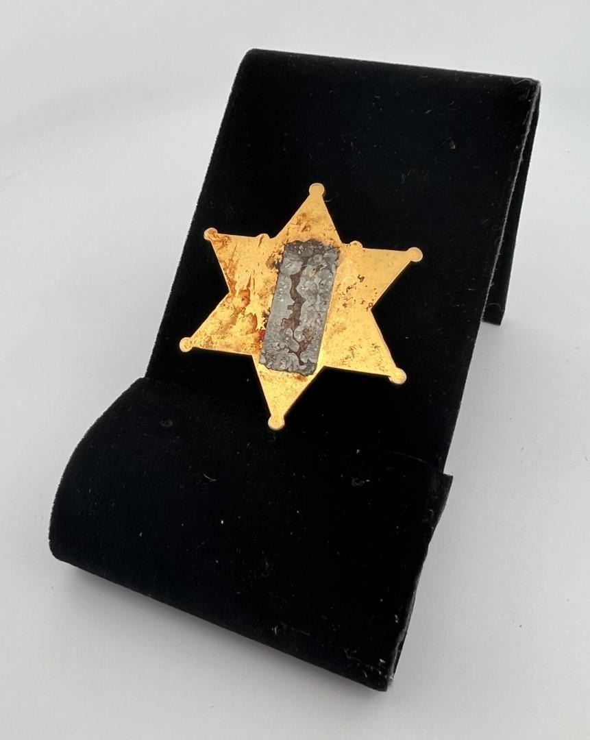 Identified to Larry Leslie. Larry Leslie was jailed for entering into a "prohibited contract" with lawyer Gerald Hertach when Leslie accepted $285,000 in bribes. 1 5/8" diameter. Provenance: Jack Ooley Collection.