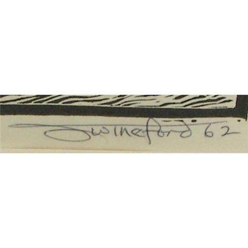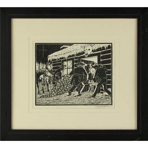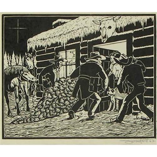 , Derald Swineford , Lineoleum Cut , Western Christmas Scene , 8" x 10" , Ink Signed Lower Right 62' , (1386)