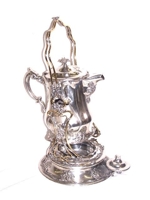 Derby, Art Nouveau Silver Plate Tea Kettle with Stand