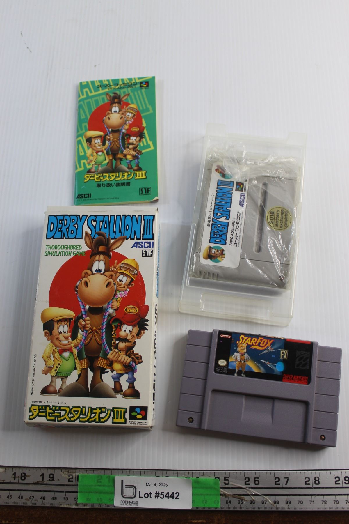 Derby Stallion III Simulation Game and Super Nintendo Star Fox Game Cartridge - As Is