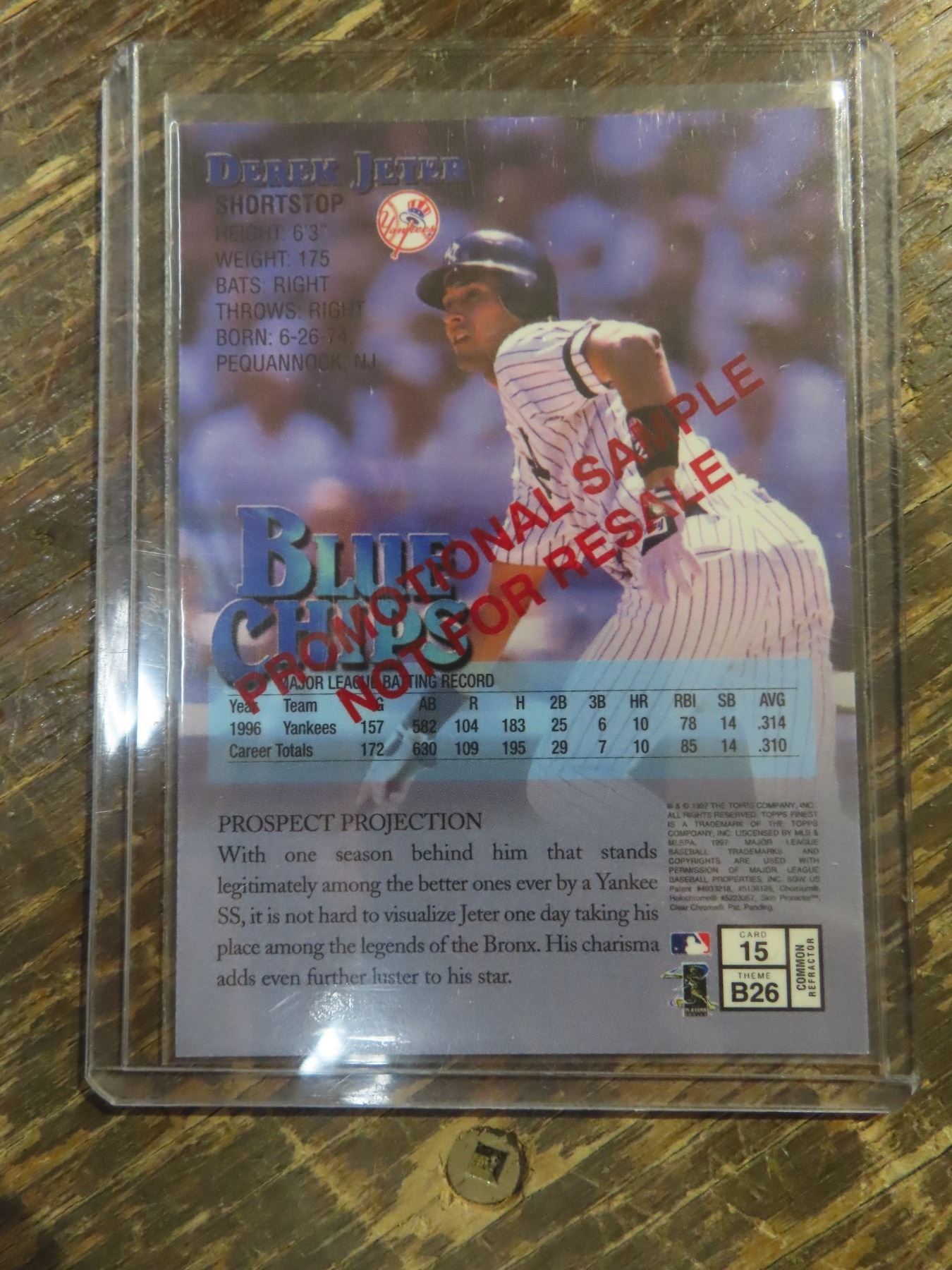 Derek Jeter 1997 Topps Finest Blue Chips #15 promo REFRACTOR