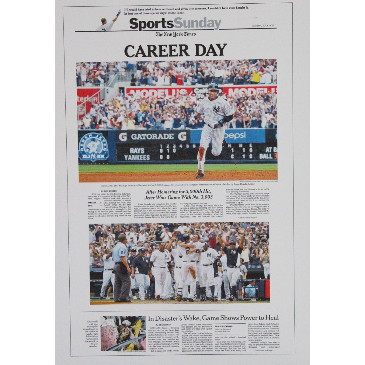 Derek Jeter DJ3K New York Times Cover Re-Print: 7-10-11 -