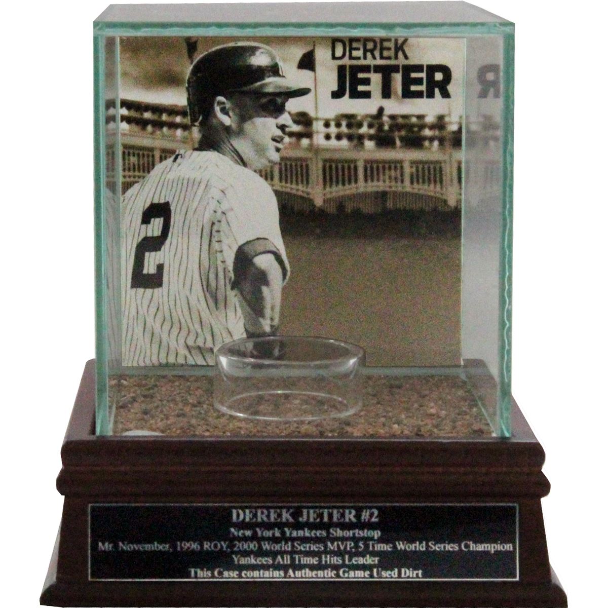 Derek Jeter "Side View w/Facade" Background Glass Single Baseball Case w/ Yankee Stadium Authentic Dirt & Nameplate